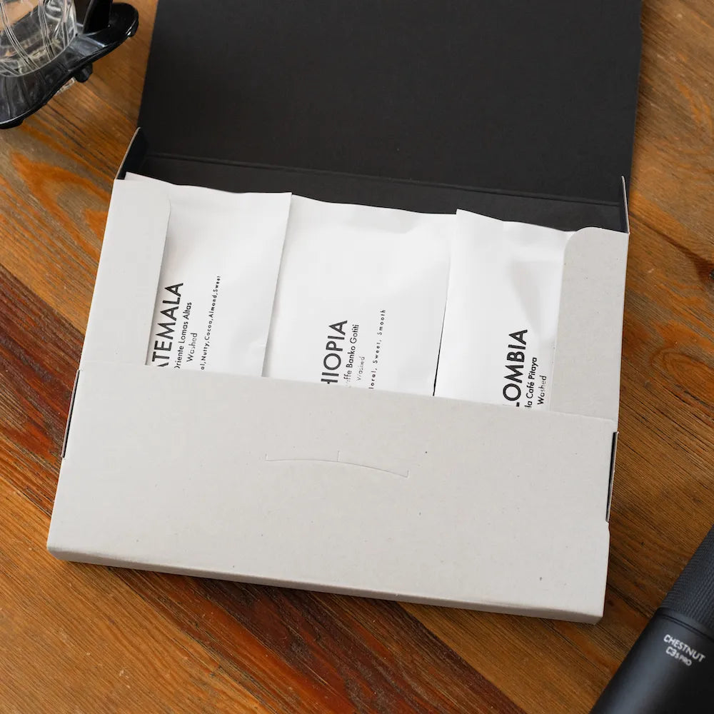 HOOPのスペシャルティコーヒー3種類を、お好みで選んで飲み比べできるセットです。